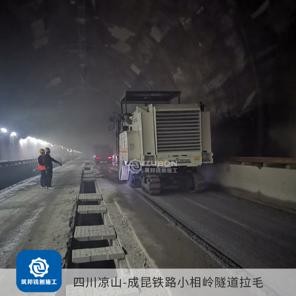 對于隧道長度超過6KM以上的無渣軌道,隧道仰拱面和找平層,因為標高控制不嚴或者施工過程中的二次污染及破壞,澆筑混凝土前對原仰拱及填充面進行清理鑿毛,鑿除已澆筑混凝土表面的水泥砂漿和松散層,然后用用高壓水仰拱填充頂面沖洗干凈,去除泥滅、積水等雜質,使其標高達到設計要求,就需要用大型銑刨機進行連續(xù)銑刨作業(yè),無論從銑刨深度還是銑刨效率及平整度而言,筑邦溫馨提示大型銑刨機比小型手推式銑刨機有明顯優(yōu)勢。采用德國進口