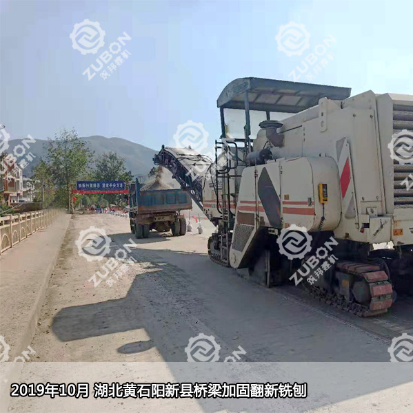 2019年10月,湖北黃石陽新縣內(nèi)四座年代已久的橋梁(星潭大橋、海口大橋、木港大橋、不知名)需要進行加固翻新,6公分水泥銑刨。業(yè)主通過了解和各方對比,獲悉湖南筑邦建設(shè)機械有限公司承接過太原晉祠大橋、銀川閱海大橋、赤石特大橋、洞庭湖大橋等橋梁銑刨工程。最終將工程交與我公司,此次用到的銑刨機是德國進口維特根W2100。