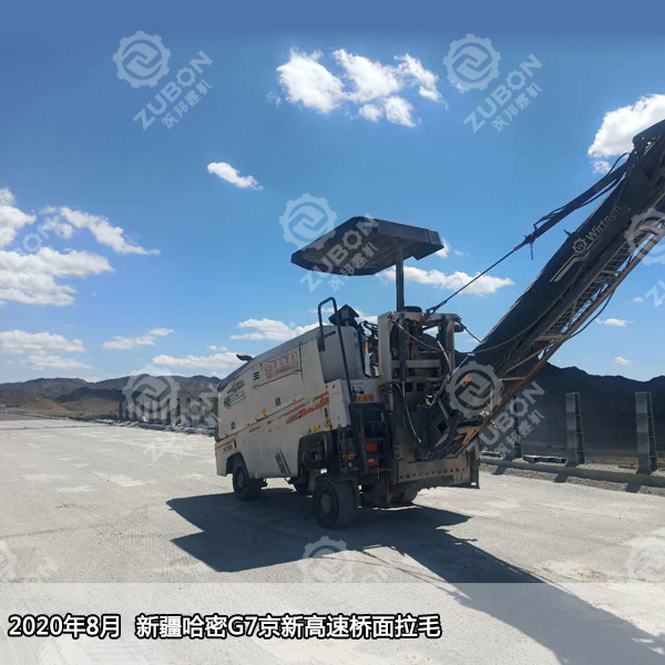 來自疫情嚴(yán)控下哈蜜京新高速項目的報道,2020年8月6日,新疆哈密G7京新高速伊吾至巴里坤段橋面防水拉毛施工開始??偸┕だ锍倘喙?,銑刨面積約十余萬平方米,本次由具備5年施工經(jīng)驗的“老司機(jī)”佘高明攜維特根銑刨機(jī)W130H,山貓清掃機(jī)等設(shè)備前往哈蜜,征戰(zhàn)千里戈壁。
