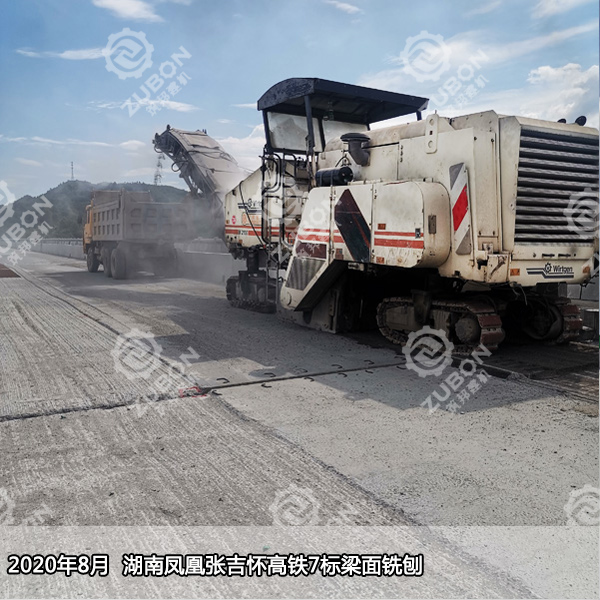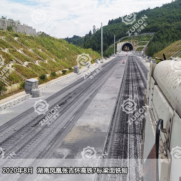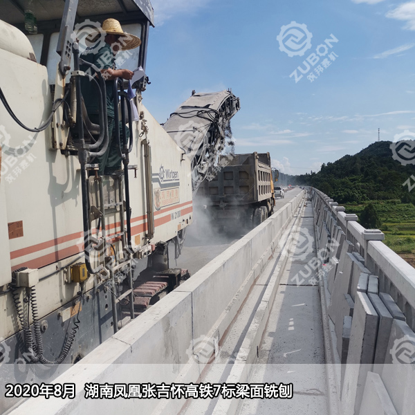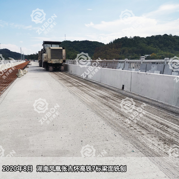 2020年8月湖南鳳凰張吉懷高鐵7標橋面銑刨。