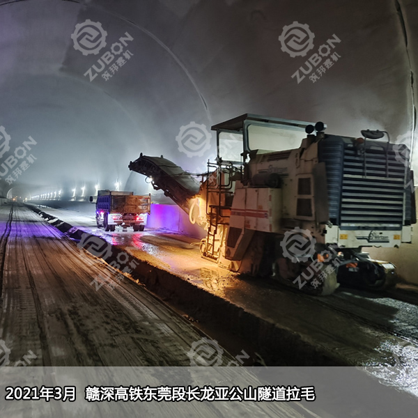 仰拱鑿毛及填充面進(jìn)行清理鑿毛,鑿除已澆筑混凝土表面的水泥砂漿和松散層,然后用用高壓水仰拱填充頂面沖洗干凈,去除泥滅、積水等雜質(zhì),使其標(biāo)高達(dá)到設(shè)計(jì)要求,就需要用大型銑刨機(jī)進(jìn)行連續(xù)銑刨作業(yè),無(wú)論從銑刨深度還是銑刨效率及平整度而言,筑邦溫馨提示大型銑刨機(jī)比小型手推式銑刨機(jī)有明顯優(yōu)勢(shì)。采用德國(guó)進(jìn)口專用設(shè)備施工,施工質(zhì)量控制精度高,施工方便、進(jìn)度快,施工后具有宏觀平整、微觀粗糙的表面,能提供足夠抗滑構(gòu)造。