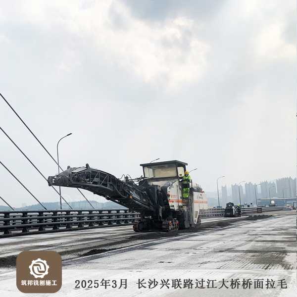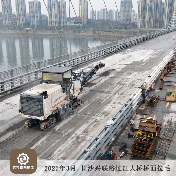 2025年3月 長沙長益復(fù)線至興聯(lián)路大通道(過江段)項(xiàng)目橋面精銑刨15萬㎡順利完工。