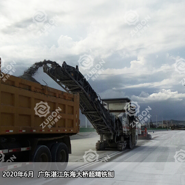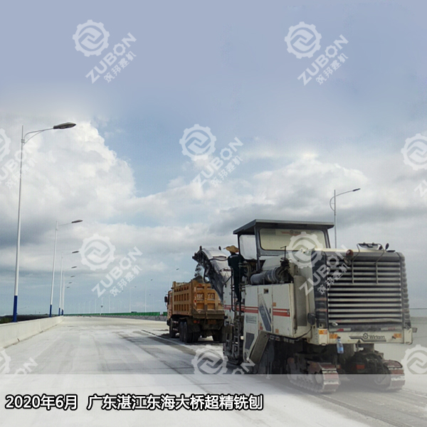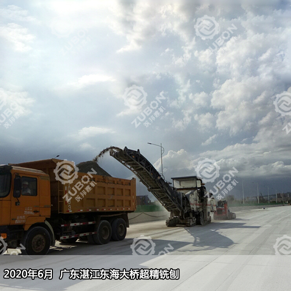 2020年6月廣東湛江東海大橋超精銑刨,此次用到的是維特根精銑刨機W2000,搭配700多把刀頭精銑鼓,精銑刨后清掃完畢直接開放交通。