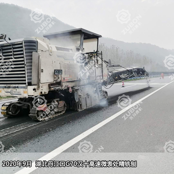 2020年9月湖北丹江口漢十高速微表處精銑刨5mm,用到的是進(jìn)口維特根精銑刨機(jī)W2000。