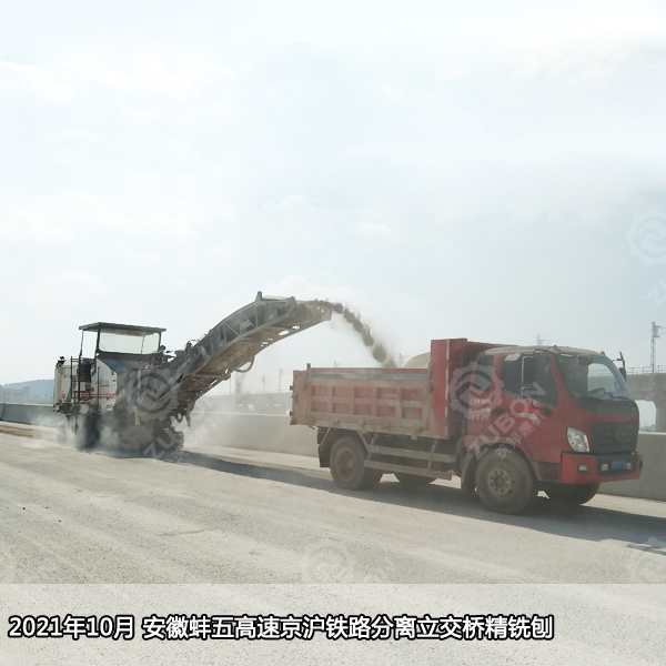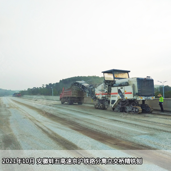 精銑刨施工正在火熱施工中,為蚌五高速早日通車,筑邦施工人員們兩班倒,以每天銑刨面積約15000㎡的速度進(jìn)行著。